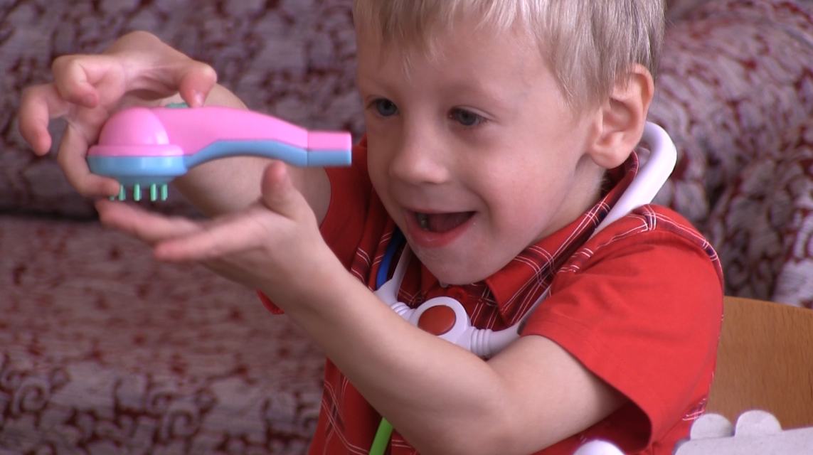 Далі йдемо до Льоні, котрого всиновити можна, проте поки що немає бажаючих. Хлопчику 5 рочків, але він досі не розмовляє. Інколи можна почути лише окремі слова: «да», «хочу», «дай»… Вихователі кажуть, що розуміють його, бо вже звикли до його не завжди адекватних реакцій.