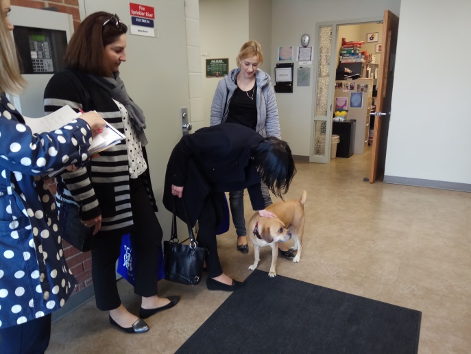 А на порозі нас зустрів собака, такий лагідний та привітний. Коли я почала його гладити то помітила, що став він так, аби мені зручно було його гладити. Потім мені сказали, що це – спеціально навчений собака, для заспокоєння агресії дітей. Він навчений не реагувати на крики та істерики, а навпаки бігти там де таке відбувається і заспокоювати дитину.