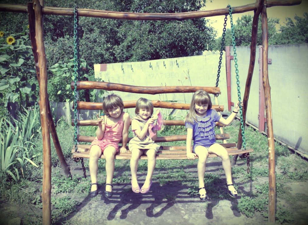 У квітні 2014 року на Великодні свята три сестрички з Центру ‘Промінь надії’, Оленка 7 років, Оксана 6 років та Оля 5 років, переїхали жити у прийомну сім’ю. Через два місяці ми відвідали цю родину у їх будинку в одному з мальовничих сіл Київської області. Діти зустріли нас у своєму новому домі, показали будинок та розказали про життя з новими членами сім’ї, а батьки ділилися враженнями та змінами, які відбулися в сімї, розповідали про турботи та радощі, які принесли з собою маленькі сестри. З першого ж погляду на подвір’я сім’ї стає зрозуміло, що тут живуть працьовиті люди. На невеличкій території господарі вирощують кущі ягід, свіжу зелень, городину. Сам будинок ховається за фруктовими деревами та охайно доглянути квітниками. Господар обладнав на подвір’ї власний спортзал, своїми руками змайстрував куточок для дитячих забав, який прикрашають надзвичайно колоритні дерев’яні гойдалки.
